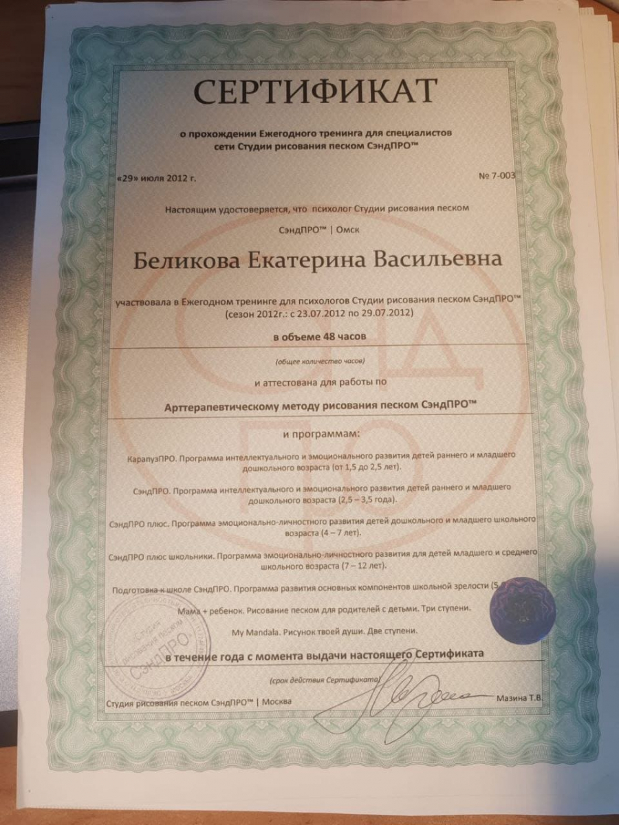 - 2012 – 2016, психолог, Студия рисования песком «СэндПРО»
