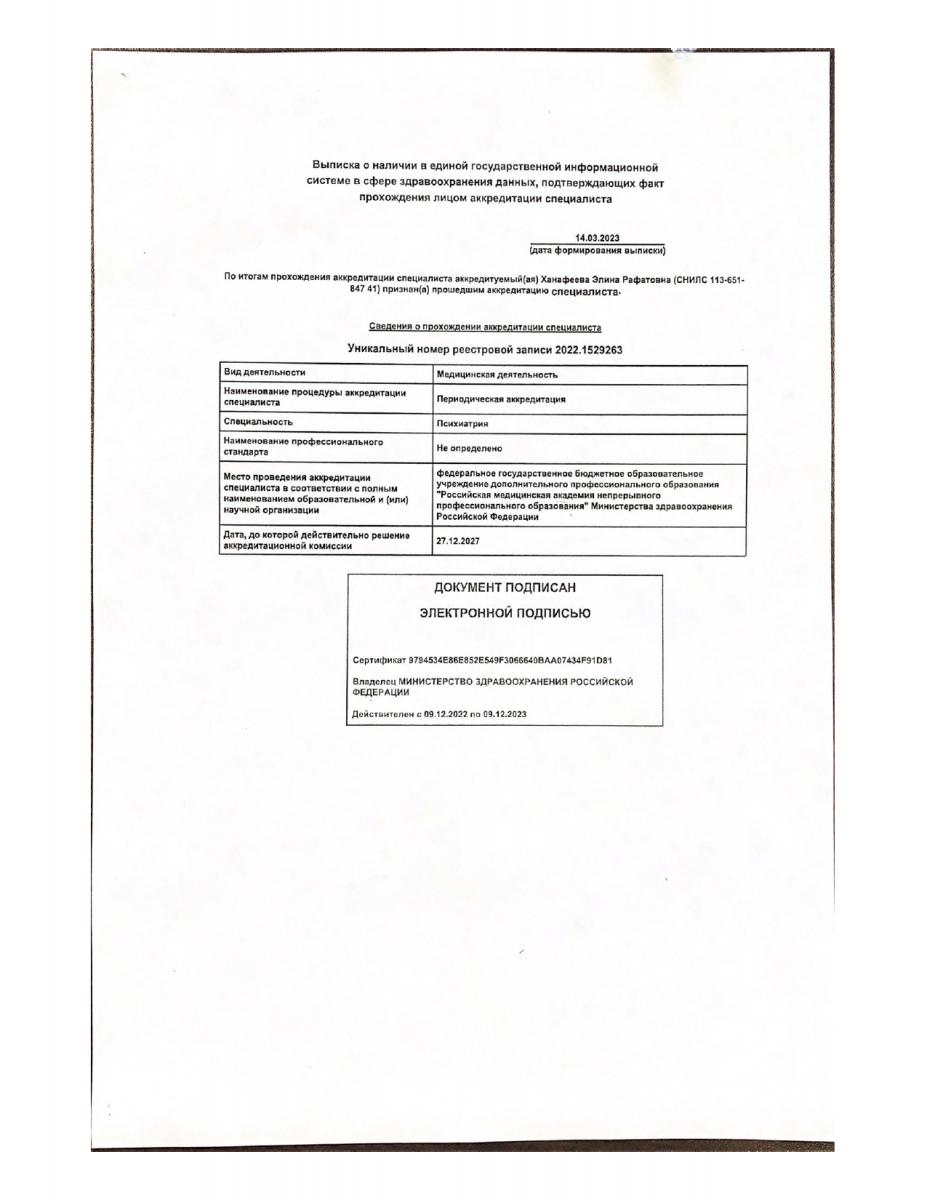 • 27.12.2022 аккредитация по специальности «Психиатрия»